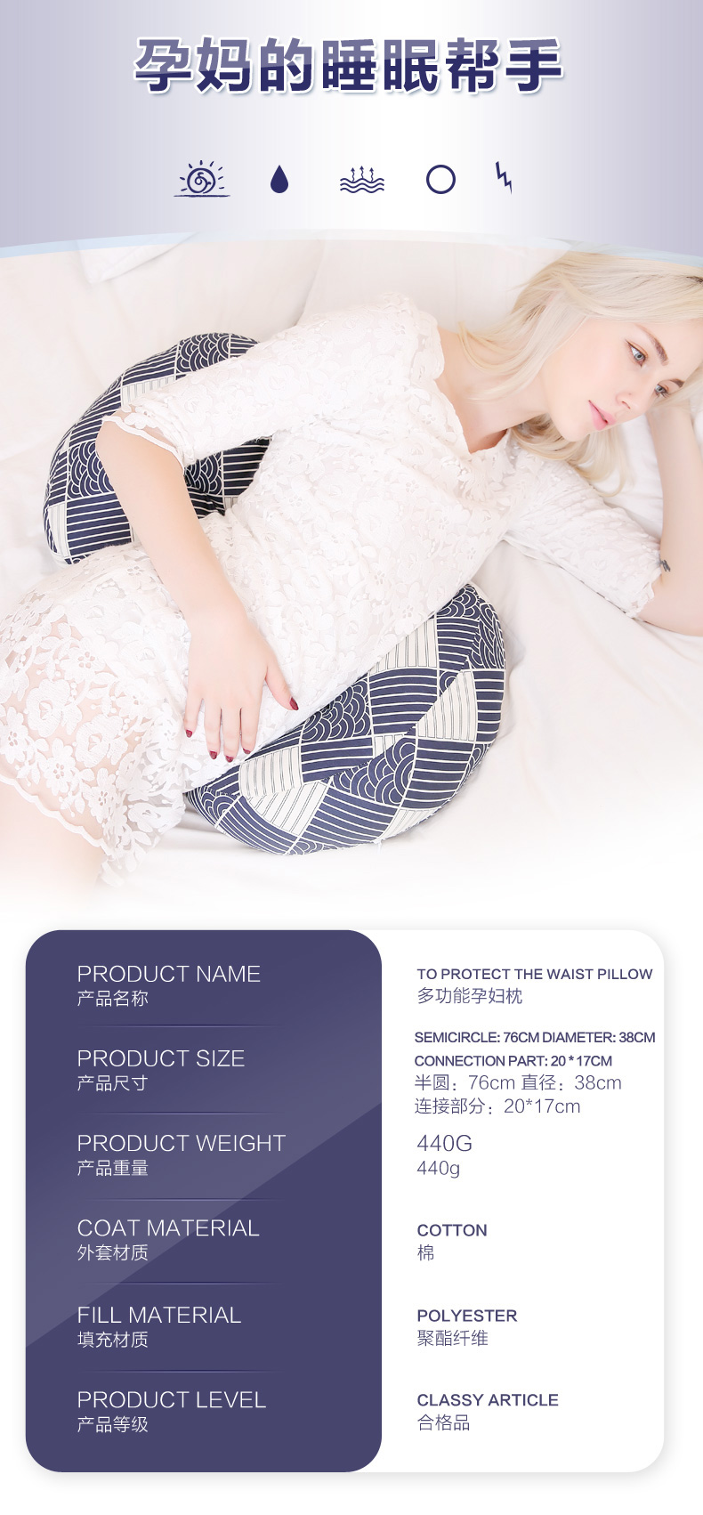 多米贝贝孕妇枕头护腰侧睡枕U型卧枕托腹睡觉神器抱枕怀孕期用品 蓝云雨滴