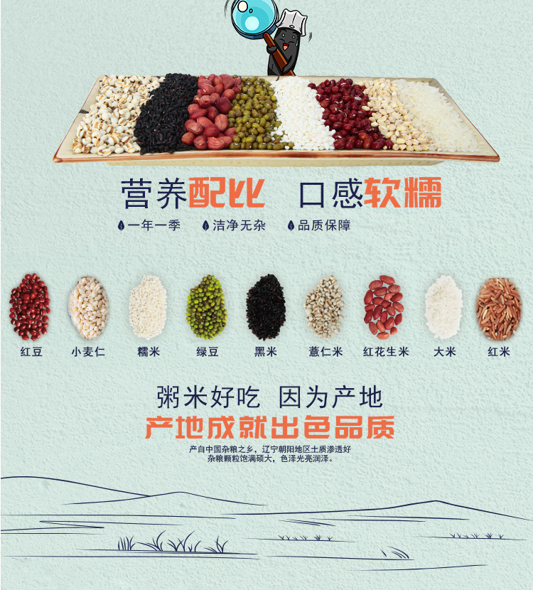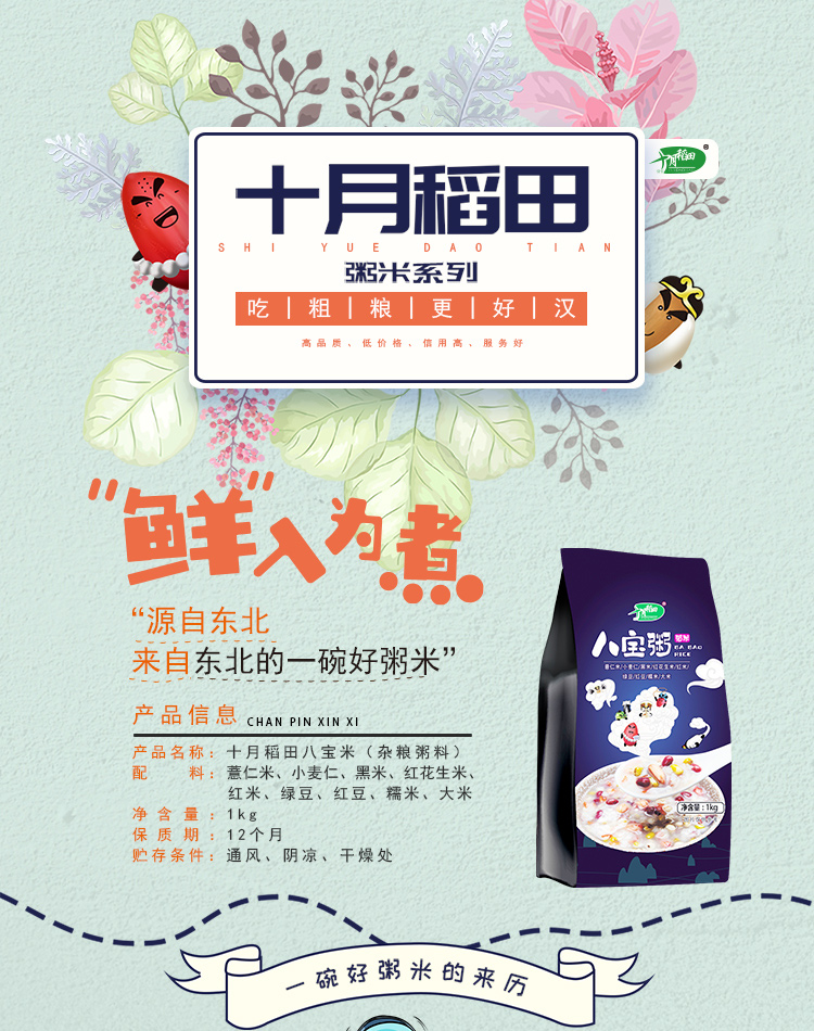 十月稻田 八宝粥米(红豆 小麦仁 糯米 绿豆 黑米 薏仁米等 杂粮 腊八粥料 大米伴侣) 1kg