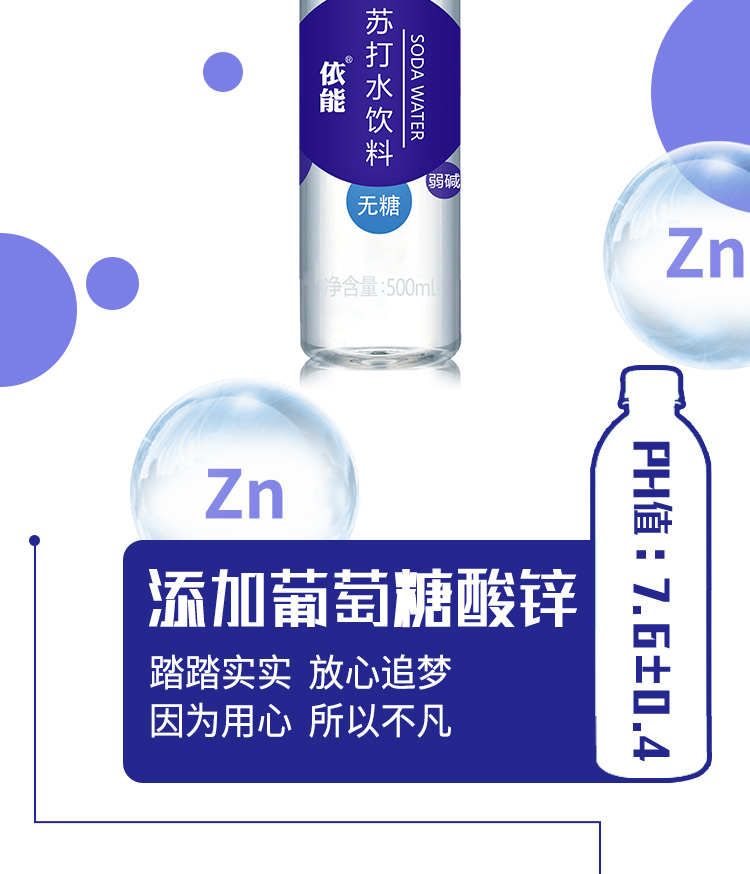 依能 加锌 无糖无汽弱碱 苏打水饮料 500ml*15瓶 塑膜量贩装